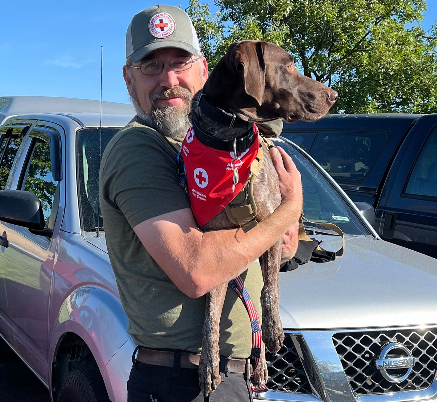 Brett was medically retired in 2021 after nearly 24 years of combined service in the U.S. Air Force and Washington Air National Guard. His career positions included vehicle maintenance, material management, and ground transportation. Not too long after retirement, a local rescue called and brought Goose into his life. Initially just as an additional member of the family, it quickly became apparent of Goose’s natural abilities after numerous “alerts”. Building upon these, Goose became the first graduate of Hounds 4 Heroes. Brett and Goose spend their time camping, hopefully fishing soon, and volunteering with various Vet groups.